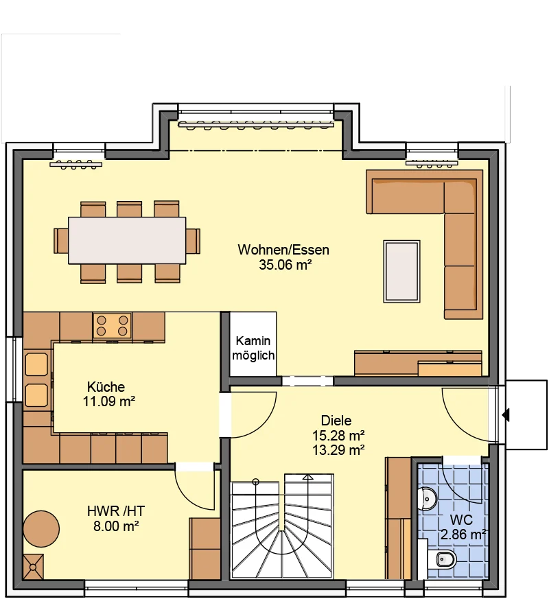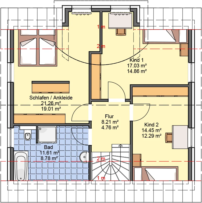 | Raumhöhen | EG 2,57 m, DG 2,50 m (Lichte Rohbauhöhe) |