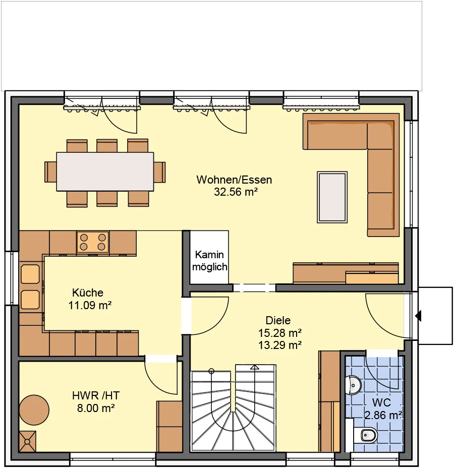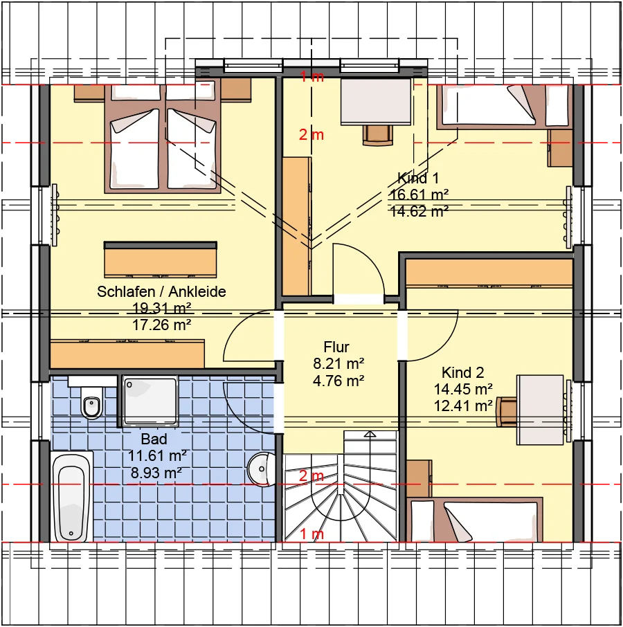 | Raumhöhen | EG 2,57 m, DG 2,50 m (Lichte Rohbauhöhe) |
