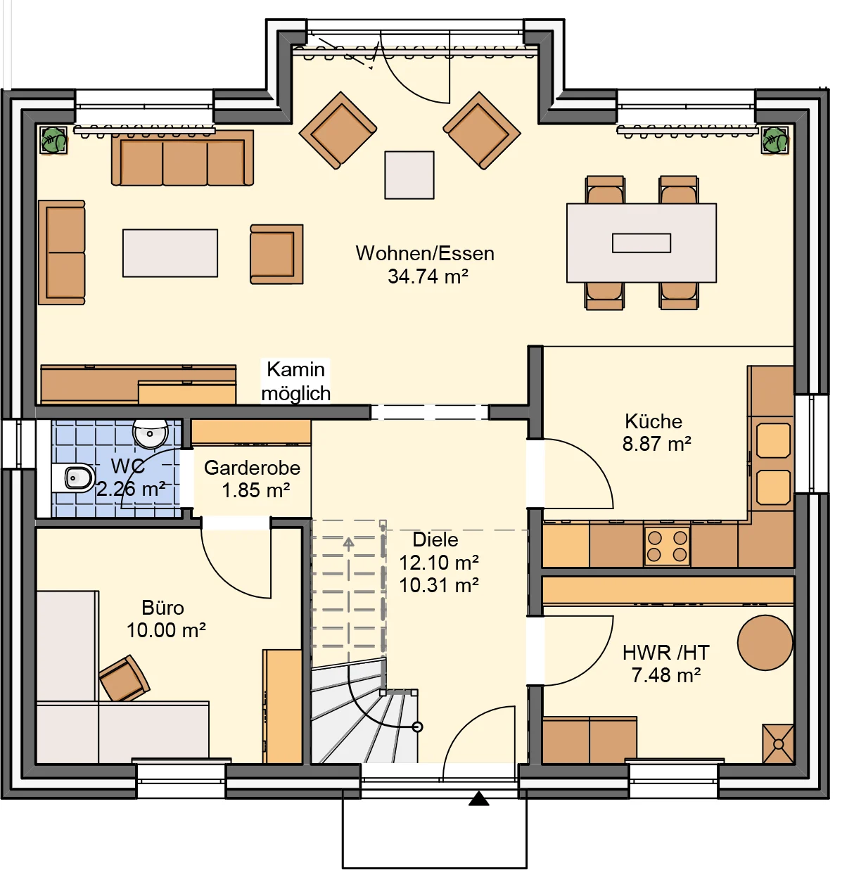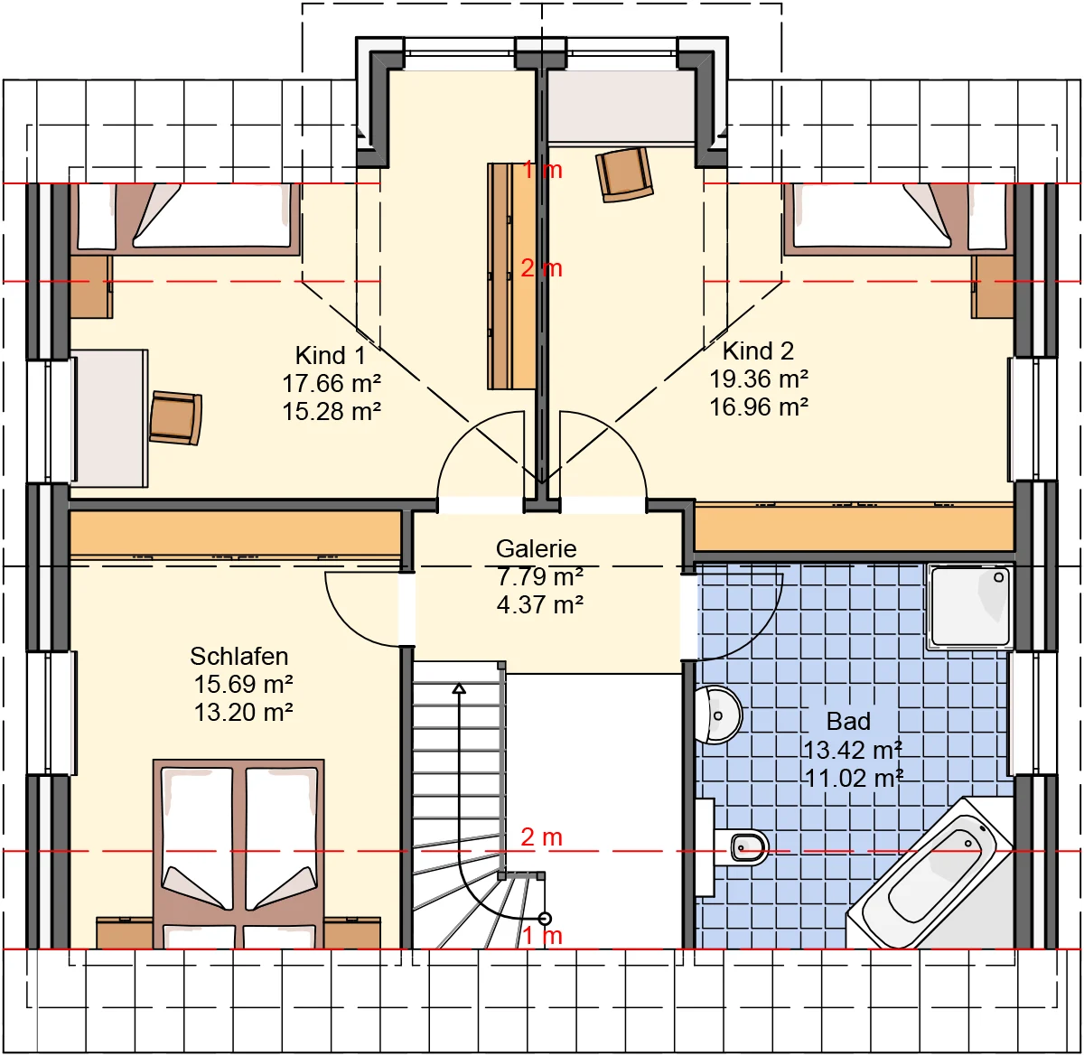 | Raumhöhen | EG 2,57 m, DG 2,50 m (Lichte Rohbauhöhe) |