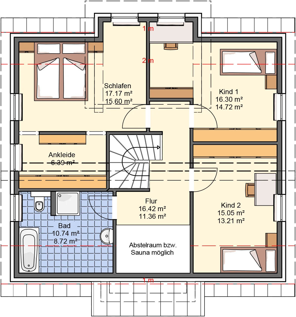 | Raumhöhen | EG 2,57 m, DG 2,50 m (Lichte Rohbauhöhe) |