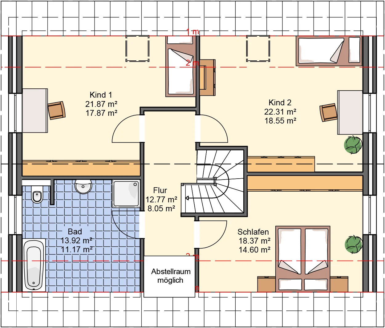 RaumhöhenEG 2,57 m, DG 2,50 m (Lichte Rohbauhöhe)