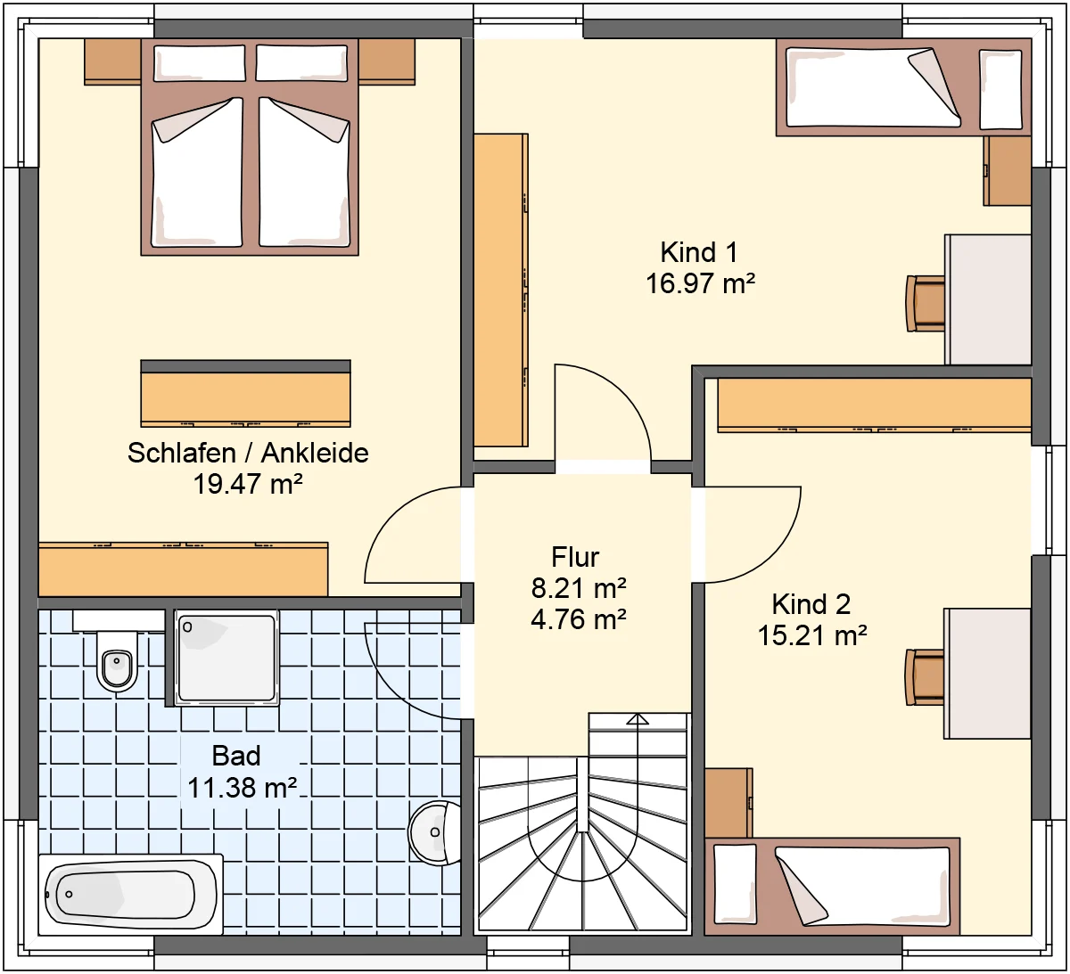| Raumhöhen | EG 2,57 m, DG 2,50 m (Lichte Rohbauhöhe) |