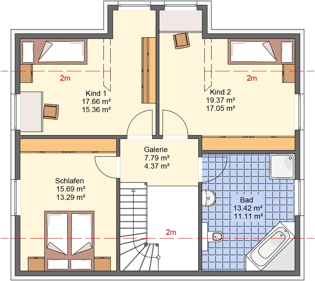 | Raumhöhen | EG 2,57 m, DG 2,50 m (Lichte Rohbauhöhe) |