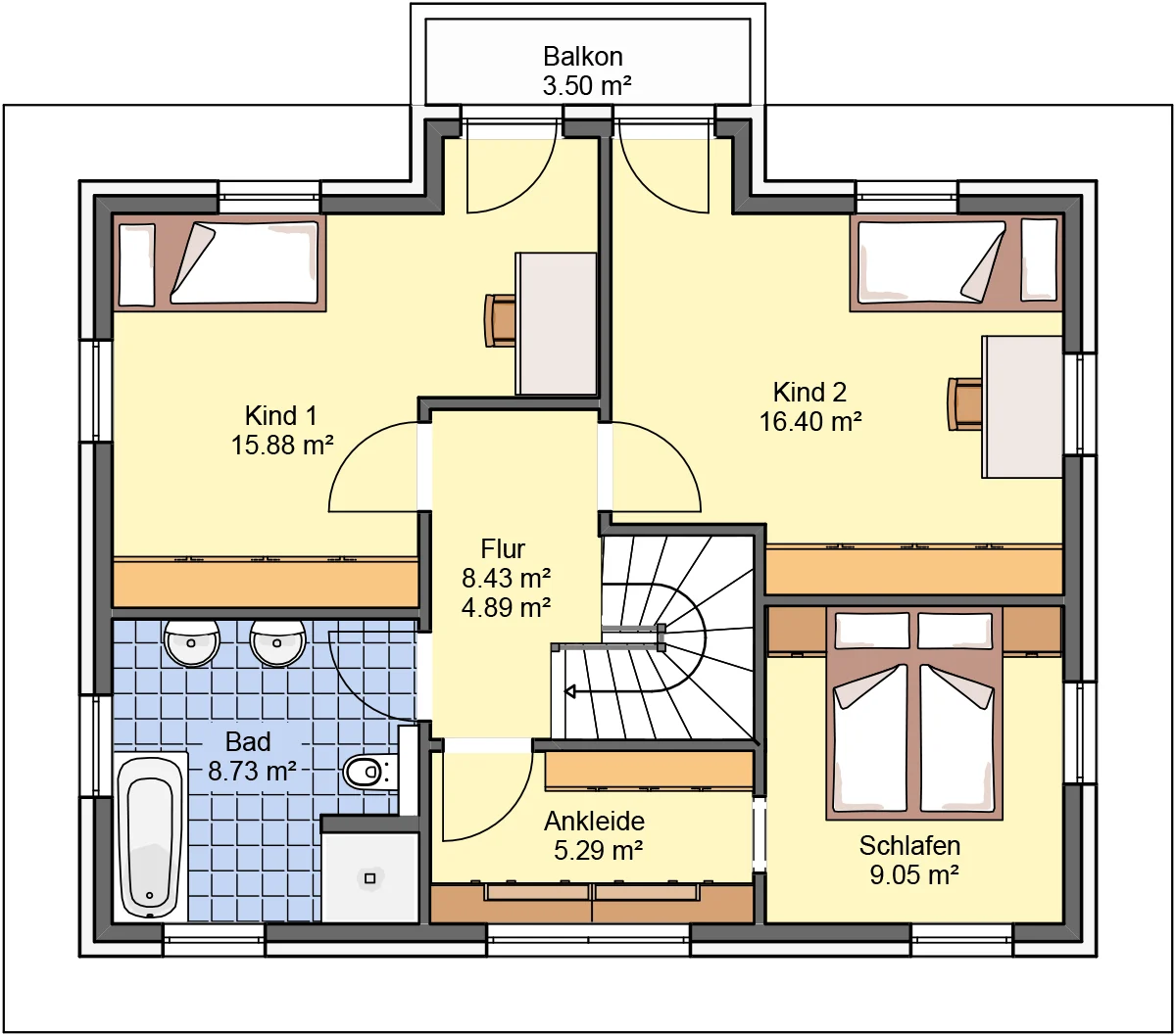 | Nettogrundfläche | EG 86,5 m², DG 86,5 m² |